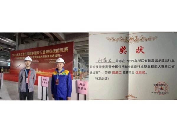 公司員工劉益君參加2024年浙江省住房城鄉建設行業職業技能競賽暨全國住房城鄉建設行業職業技能大賽中,榮獲“鋼筋工競賽項目優勝獎”。